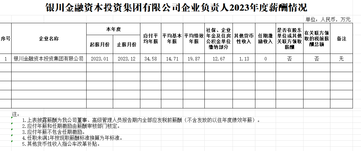 銀川金融資本投資集團(tuán)有限公司企業(yè)負(fù)責(zé)人2023年度薪酬情況