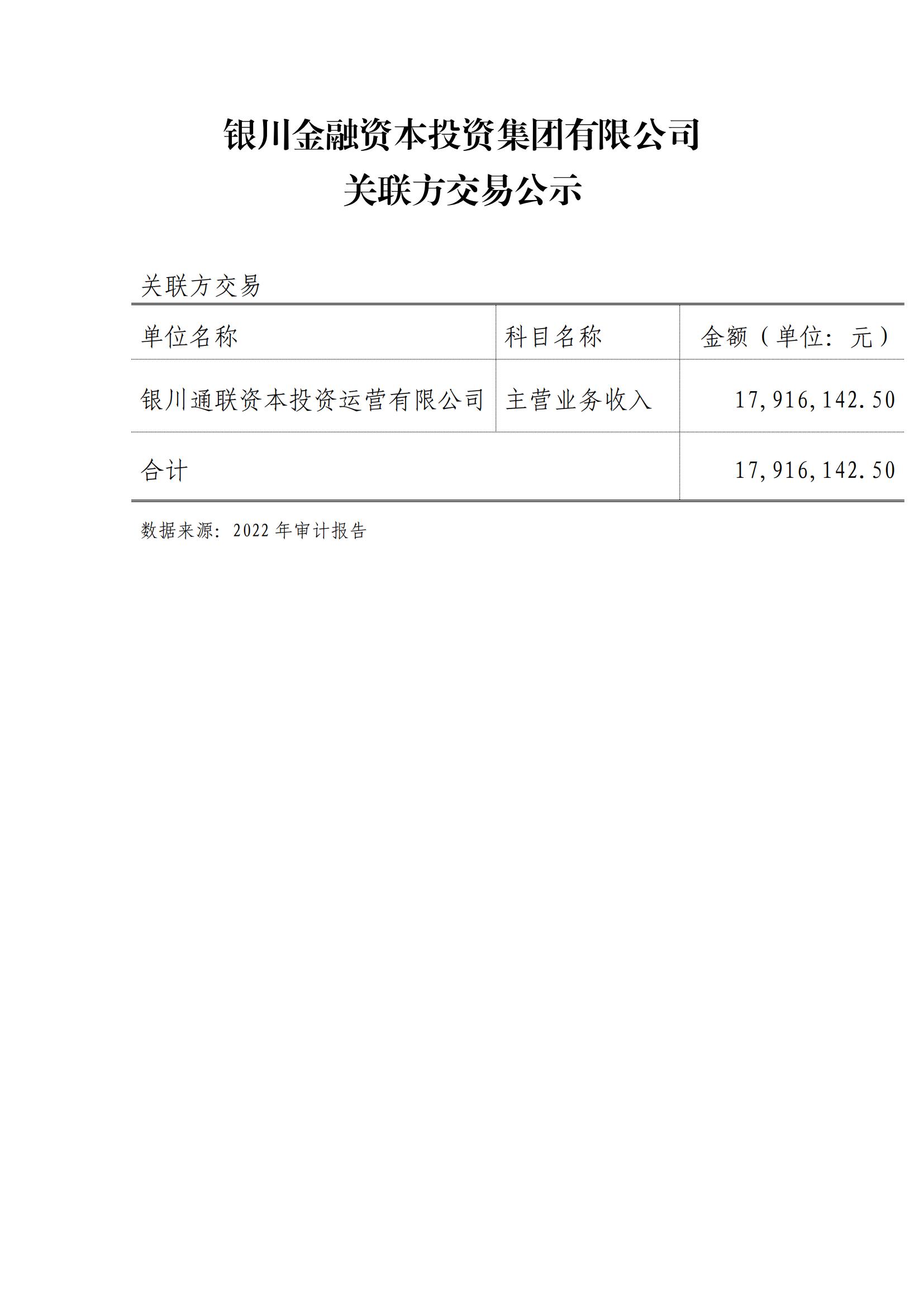 銀川金融資本投資集團(tuán)有限公司關(guān)聯(lián)方交易