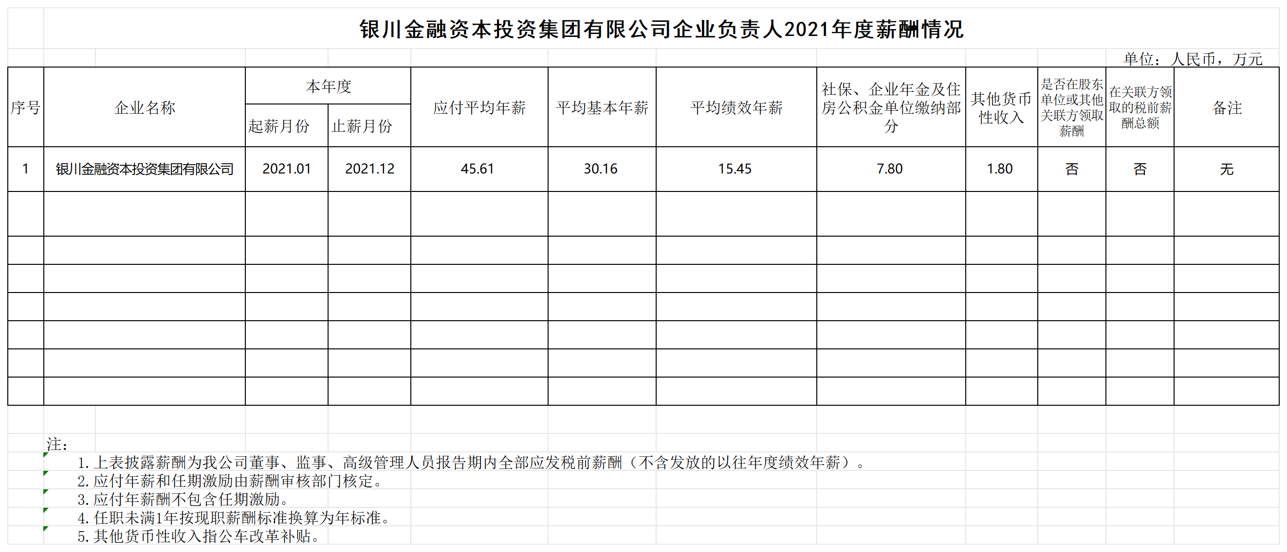 銀川金投集團(tuán)國有企業(yè)負(fù)責(zé)人2021年度薪酬情況